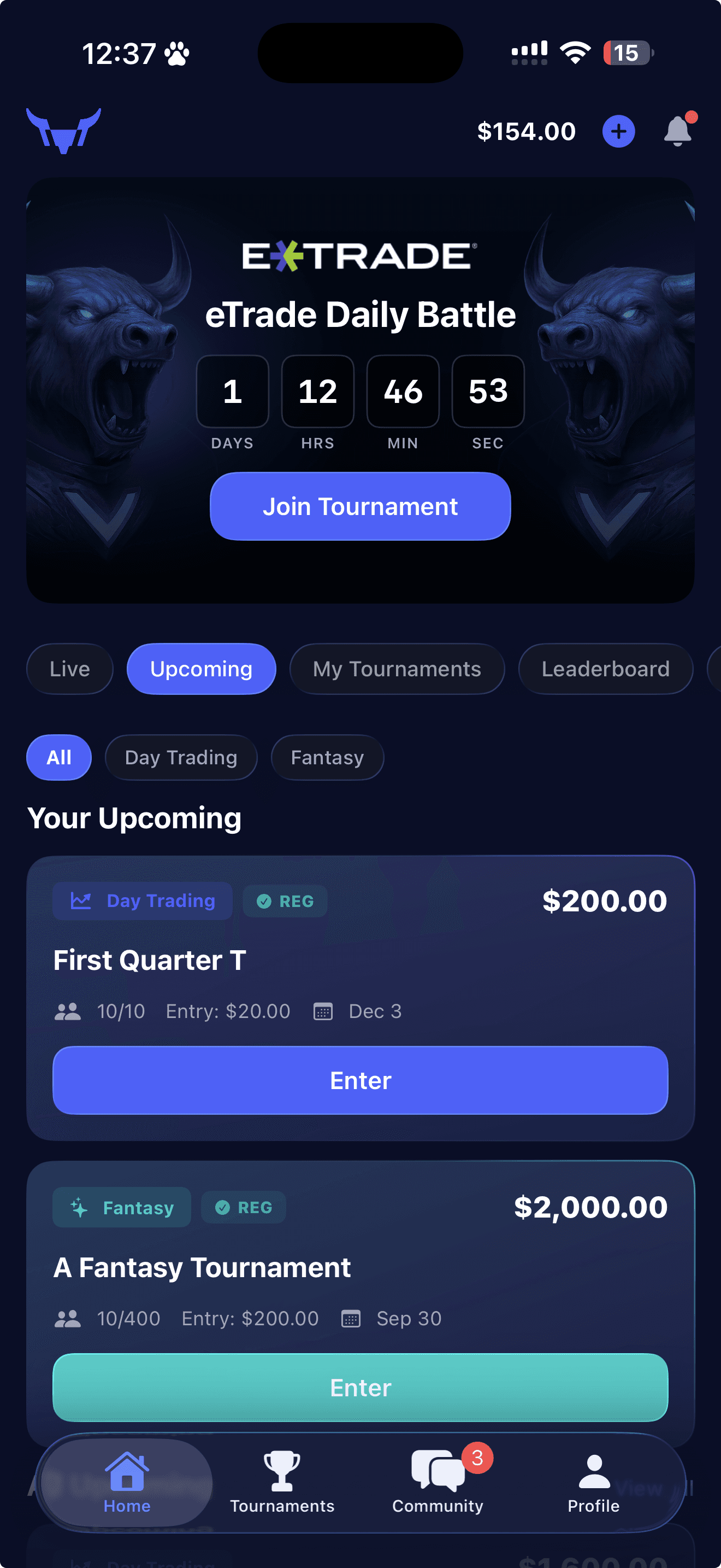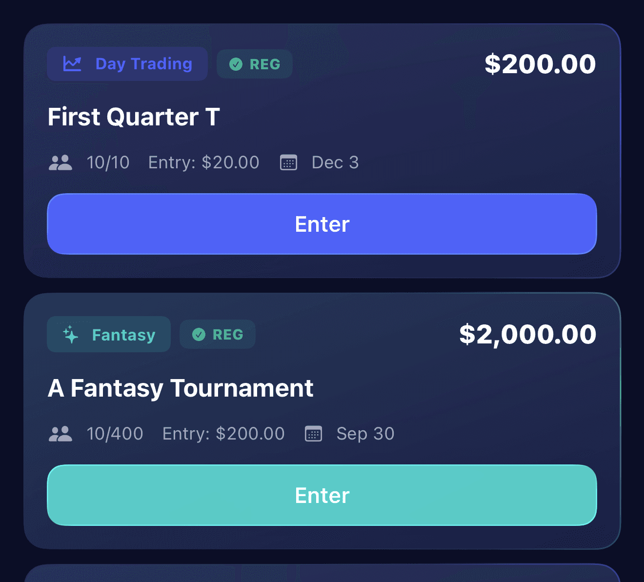 Enter Day Trading tournaments and trade live, or pick your winners in Fantasy mode — both with real prize pools.